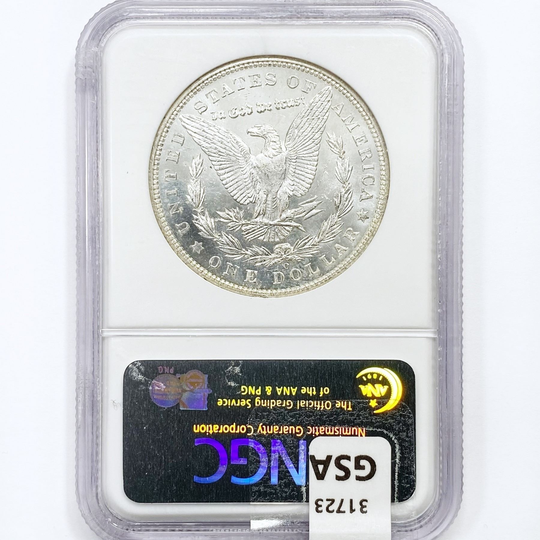 COINS AND CURRENCY LISTED IN GSA’S CATALOG AS GRADED AND ENCAPSULATED BY PCGS, NGC, ANACS, ICG, PCGS CURRENCY, PMG, PCGS BANKNOTE GRADING, CMC OR ANY OTHER THIRD-PARTY GRADING SERVICE ARE LIKEWISE SOLD “AS-IS” EXCEPT AS EXPRESSLY SET FORTH HEREIN. ALL THIRD-PARTY GRADING SERVICE GUARANTEES, INCLUDING AUTHENTICITY, ARE THE SOLE RESPONSIBILITY OF THE THIRD-PARTY GRADING SERVICE AND NOT WARRANTIES OR GUARANTEES OF GSA. BIDDERS SHOULD CONTACT THESE THIRD-PARTY GRADING SERVICES DIRECTLY WITH RESPECT TO ANY CLAIMS OR QUESTIONS THEY MAY HAVE CONCERNING THEIR GUARANTEES AND WARRANTIES. BIDDERS ACKNOWLEDGE AND AGREE THAT AUCTIONEER IS NOT BOUND BY OR LIABLE FOR ANY OPINION OR CERTIFICATION BY ANY THIRD-PARTY GRADING SERVICE. REMOVAL OF A PRODUCT FROM ITS PROTECTIVE CASING OR HOLDER OR ALTERATION OF ANY COIN HOLDER WAIVES ALL RIGHTS CONCERNING THE PRODUCT CONTAINED THEREIN.