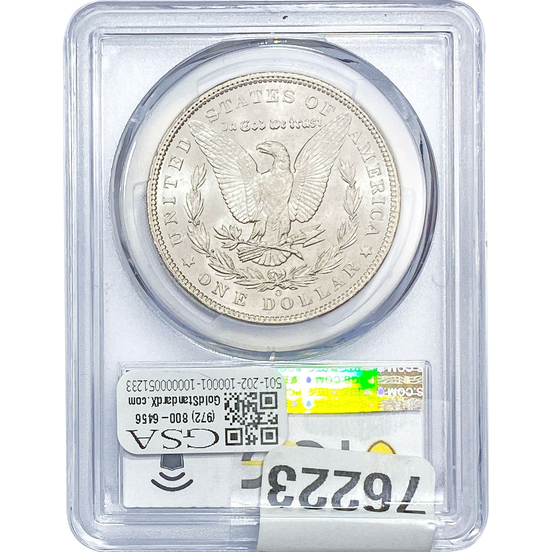 COINS AND CURRENCY LISTED IN GSA’S CATALOG AS GRADED AND ENCAPSULATED BY PCGS, NGC, ANACS, ICG, PCGS CURRENCY, PMG, PCGS BANKNOTE GRADING, CMC OR ANY OTHER THIRD-PARTY GRADING SERVICE ARE LIKEWISE SOLD “AS-IS” EXCEPT AS EXPRESSLY SET FORTH HEREIN. ALL THIRD-PARTY GRADING SERVICE GUARANTEES, INCLUDING AUTHENTICITY, ARE THE SOLE RESPONSIBILITY OF THE THIRD-PARTY GRADING SERVICE AND NOT WARRANTIES OR GUARANTEES OF GSA. BIDDERS SHOULD CONTACT THESE THIRD-PARTY GRADING SERVICES DIRECTLY WITH RESPECT TO ANY CLAIMS OR QUESTIONS THEY MAY HAVE CONCERNING THEIR GUARANTEES AND WARRANTIES. BIDDERS ACKNOWLEDGE AND AGREE THAT AUCTIONEER IS NOT BOUND BY OR LIABLE FOR ANY OPINION OR CERTIFICATION BY ANY THIRD-PARTY GRADING SERVICE. REMOVAL OF A PRODUCT FROM ITS PROTECTIVE CASING OR HOLDER OR ALTERATION OF ANY COIN HOLDER WAIVES ALL RIGHTS CONCERNING THE PRODUCT CONTAINED THEREIN.