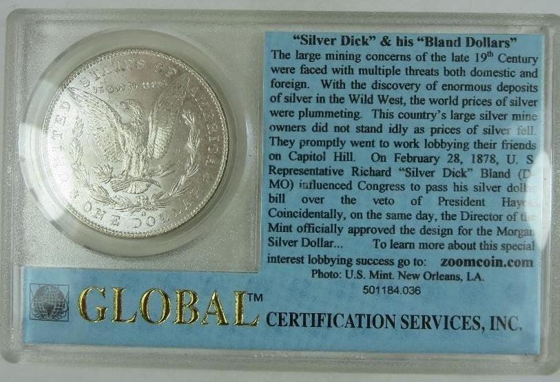 In accordance with the U.C.C. all auctions are considered to be reserve unless advertised as absolute, and during any reserve auction the auctioneer may accept bids from the seller or an agent of the seller. Items are sold 'AS IS', 'WHERE IS' with no guarantees of any kind (except for the authenticity of the item). Grading: Every person has their own opinion. It is the responsibility of the buyer to examine and grade to their own satisfaction before they bid. ABSOLUTELY NO ITEMS RETURNS ON THE BASIS OF GRADE. Buyers shall rely entirely on their own inspection and information. Returns: Internet buyers are entitled to a return within 3 days of receipt of items. In order to return an item, we must be notified of your intent to return within that 3 day period. An email should be sent to service@miy.com. After MIY's response with instructions for return. Items returned will be shipped at buyers expense. All returns are subject to a restocking fee of 15% of the purchase price with a minimum charge of $10. Shipping charges are not refundable. Items must be returned in the same holder and condition as they were sold to qualify for refund. Bidders are responsible for knowing which item they are bidding on. Bidder should inquire decline to bid if they are unsure of what they are bidding on. Once you have won the bid you have effected a contract and will be expected to pay for the item. The auctioneer reserves the right to accept bids in any increment he feels is in the best interests of his clients, the seller. Bidders are responsible any taxes or fees imposed by their state . MIY.com is providing Internet pre-auction and live bidding as a service to Bidder. Bidder acknowledges and understands that this service may or may not function correctly the day of the auction. Under no circumstances shall Bidder have any kind of claim against MIY.com or anyone else if the Internet service fails to work correctly before or during the live auction. MIY.com reserves the right to withdraw or re-catalog items in this auction.