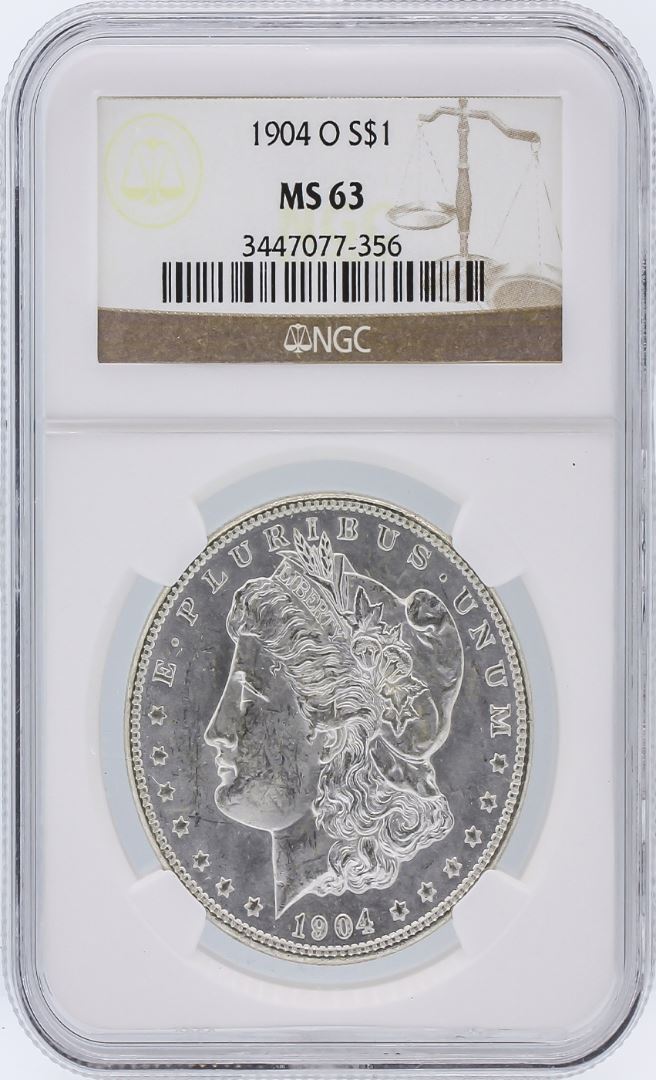 One 1904-O NGC MS63 Morgan Silver Dollar.