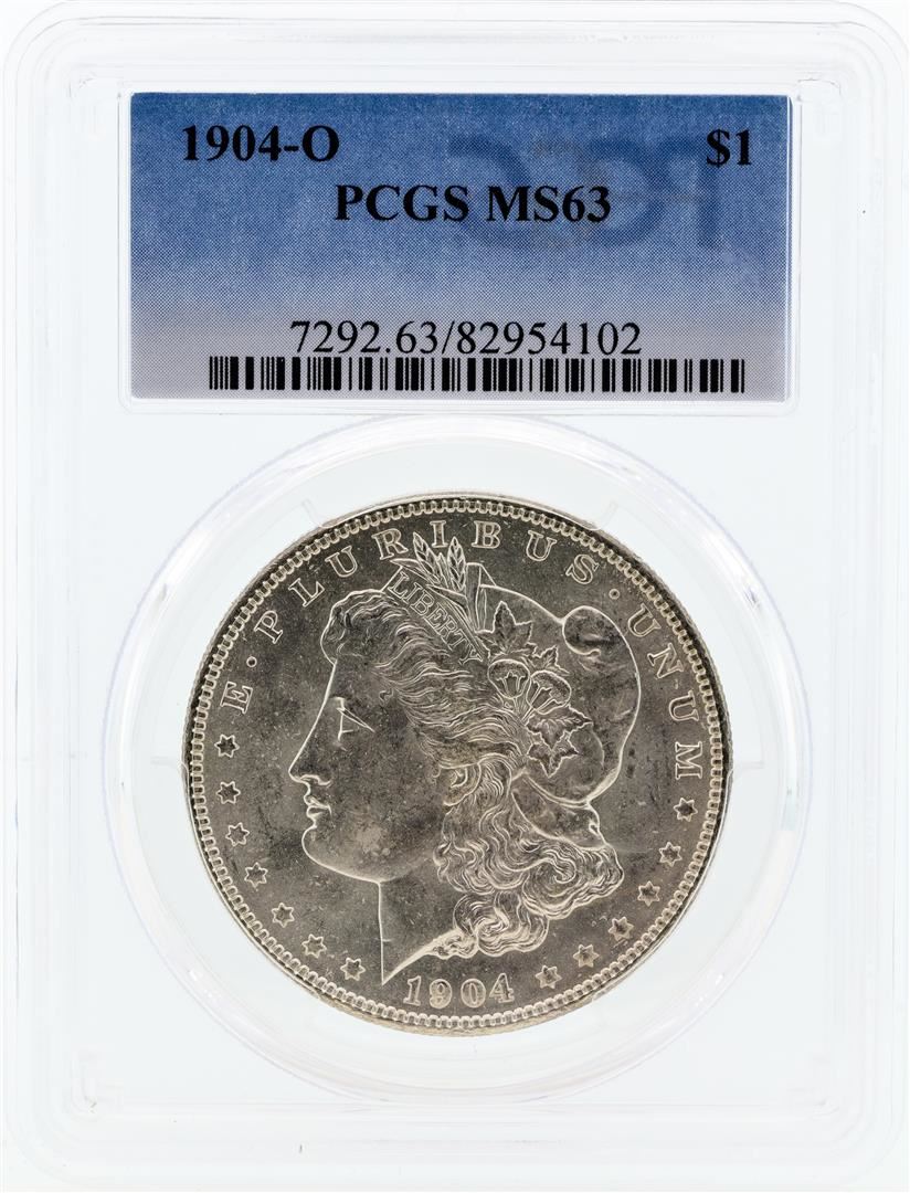 One 1904-O PCGS MS63 Morgan Silver Dollar.
