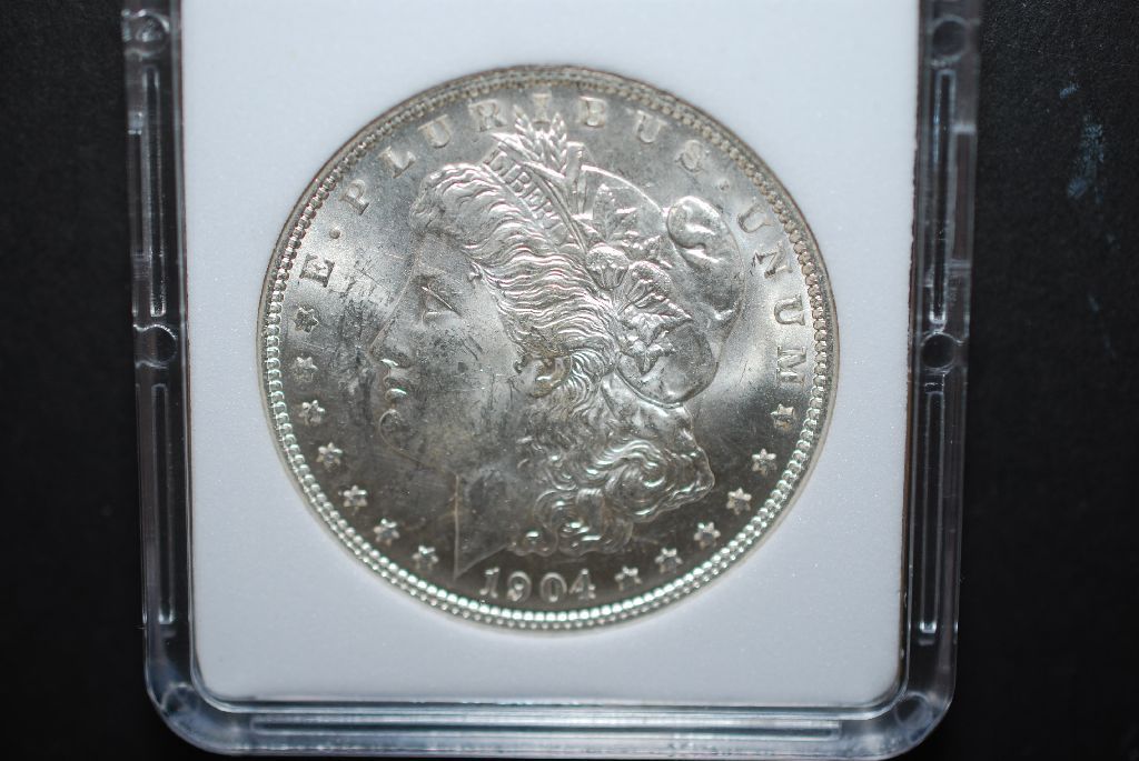 1904-O US Silver Morgan $1; MCPCG Graded MS62; EST. $45-55