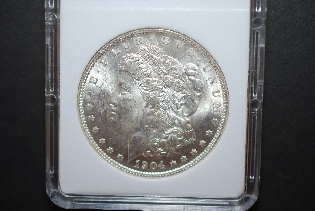 1904-O US Silver Morgan $1; MCPCG Graded MS62; EST. $50-60