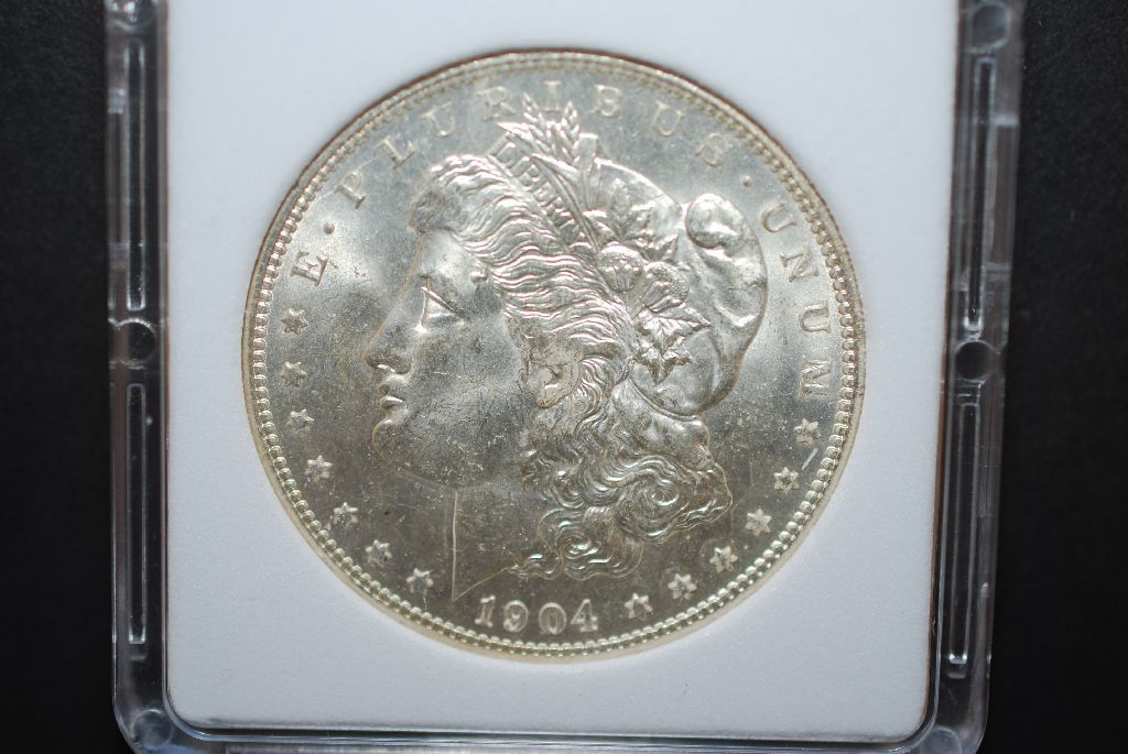 1904-O US Silver Morgan $1; MCPCG Graded MS63; EST. $50-70