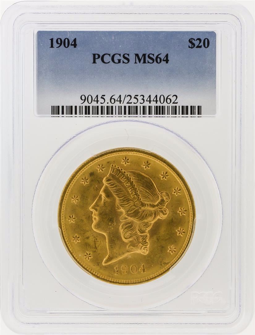 One 1904 PCGS MS64 $20 Liberty Head Double Eagle Gold Coin. PCGS Certified.