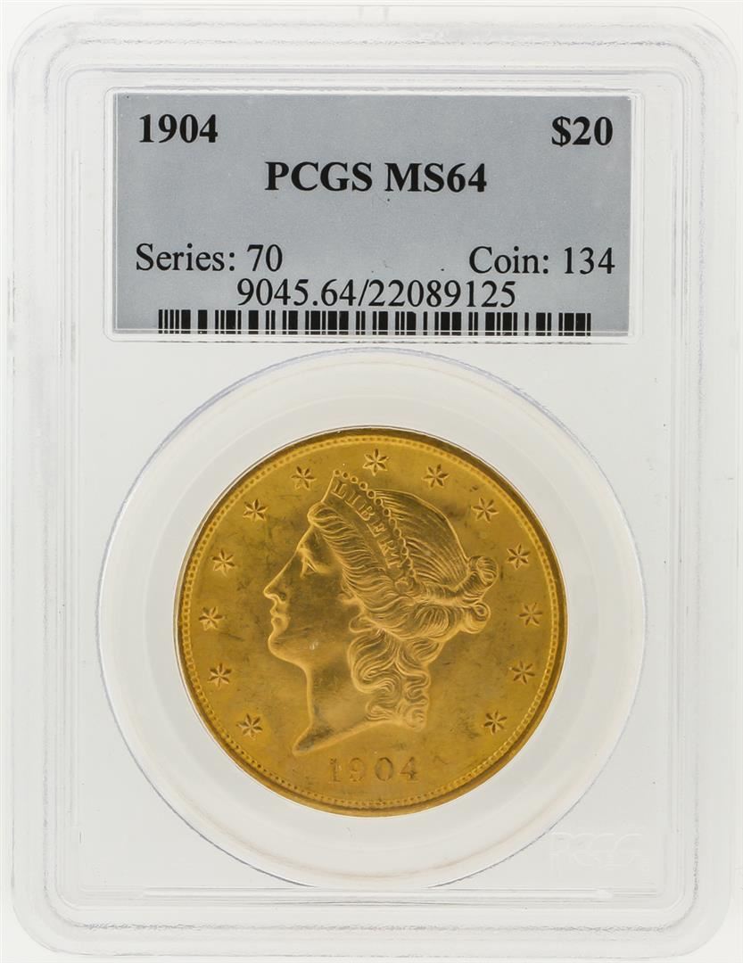 One 1904 PCGS MS64 $20 Liberty Head Double Eagle Gold Coin. PCGS Certified.