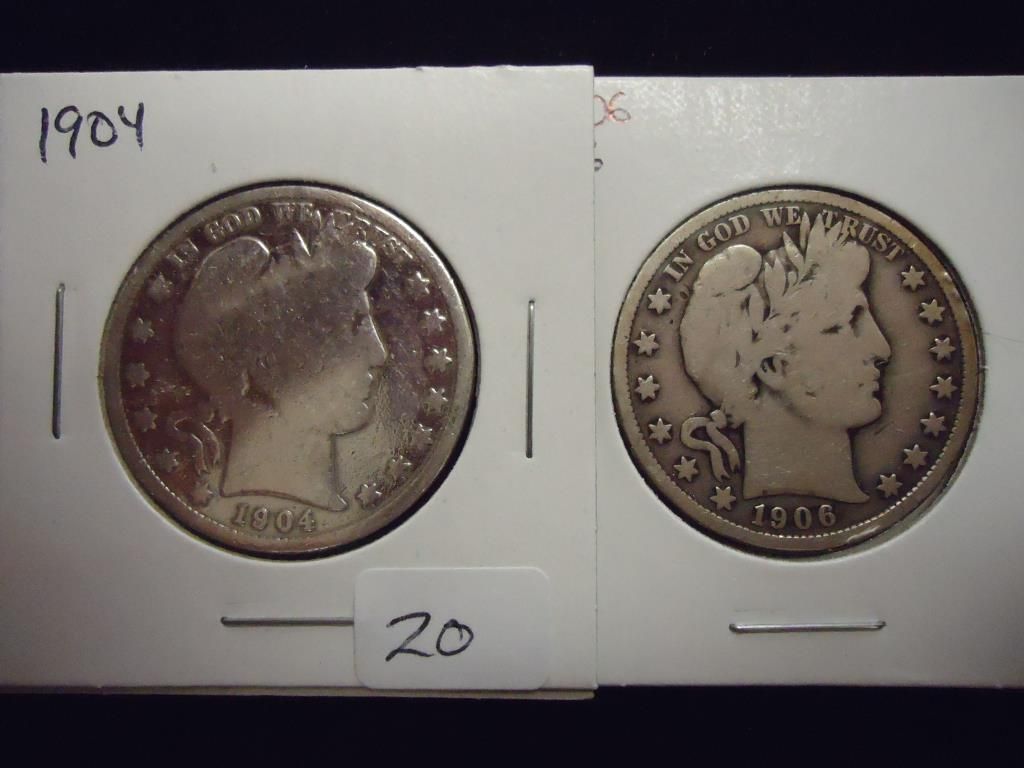 1904 POLISHED & 1906 VG BARBER HALF DOLLARS