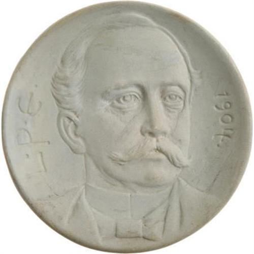 <B>1904 Presidential Candidate Alton Parker Portrait Plate,</B></I> 4.75" in diameter, the plate pictures Parker with the date 1904 and the artist's initials (L.P.E.). The reverse is marked WELLER. The plates were sold at the St. Louis World's Fair. Alton Brooks Parker (1852-1926) was an American lawyer and judge and a U.S. presidential candidate in the 1904 elections. He served as a justice of the Supreme Court of New York from 1885 to 1889, and as chief judge of New York Court of Appeals from 1898 to 1904. Parker resigned as chief judge after receiving the 1904 Democratic Party nomination for the U.S. presidency. Division within his party and the popularity of incumbent Theodore Roosevelt led to Parker's landslide defeat. Light surface wear else fine. <BR><BR><b>Shipping:</b> Hollowware/Pottery/Glass, Small (<a target="_blank" href="http://www.heritageauctions.com/common/shipping.php">view shipping information</a>)