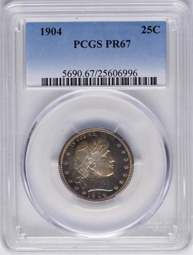 One 1904 Proof Barber Quarter Coin PCGS PR67 Amazing Color. PCGS Graded.
