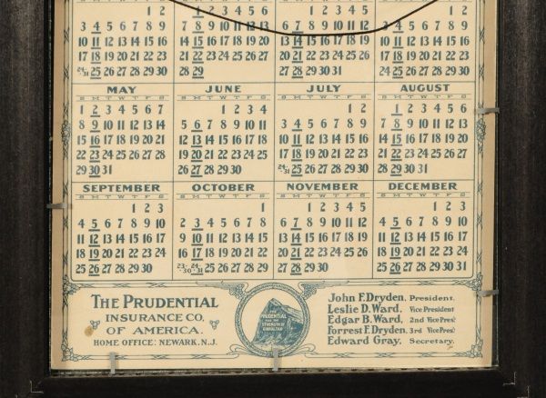 Double-Sided. Calendar is 10-1/4" x 13". Prudential Girl image is 9-3/4" x 12-1/2".