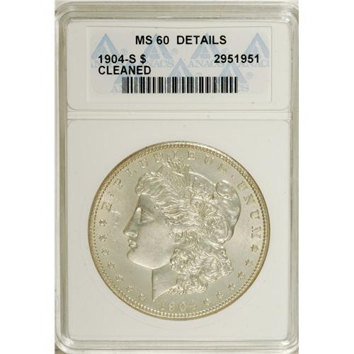 1904-S $1 --Cleaned--ANACS. MS60 Details. NGC Censu