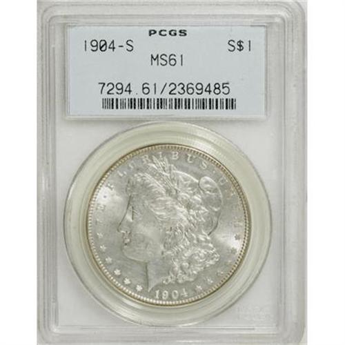 <B>1904-S $1 MS61 PCGS.</B></I> This scarce San Francisco silver dollar has potent luster and only a trace of gray toning. Smooth for the assigned grade, particularly on the reverse. The central strike is slightly incomplete. In a prior generation holder.<BR><I>From The Mario Eller Collection, Part Two.</B></I><BR><BR><B>Coin Engraver:</B> George T. Morgan<BR><BR><b>Shipping:</b> Coins & Currency (<a target="_blank" href="http://www.heritageauctions.com/common/shipping.php">view shipping information</a>)