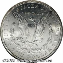 <B>1904-S<img border='0' src='http://www.heritagecoins.com/images/star.gif' width=10 height=10>$1 MS63 NGC.</B></I> Shimmering, wholly original surfaces are bright and completely untoned. The strike, while hardly complete, is slightly above average for this lesser seen issue. A few trivial facial marks cause this attractive piece to narrowly miss the MS64 tier.