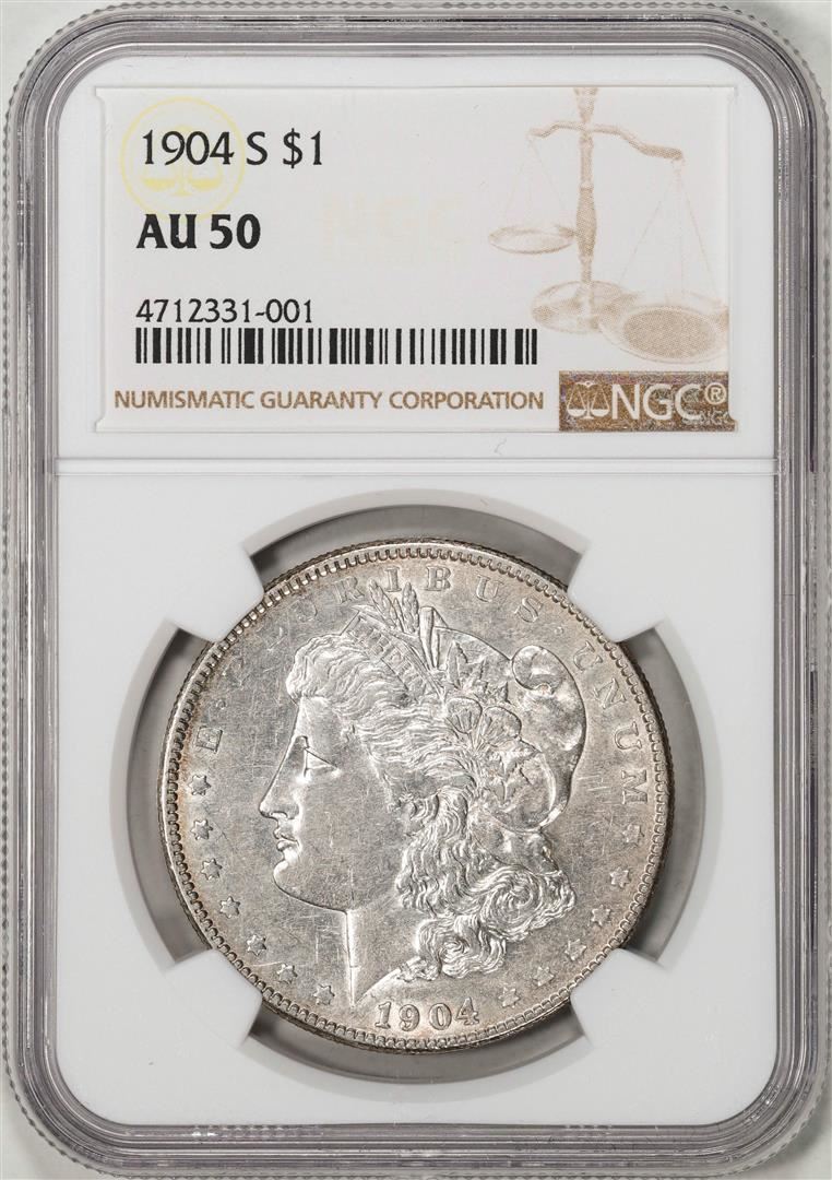 One 1904-S $1 Morgan Silver Dollar Coin NGC AU50. NGC Certified.