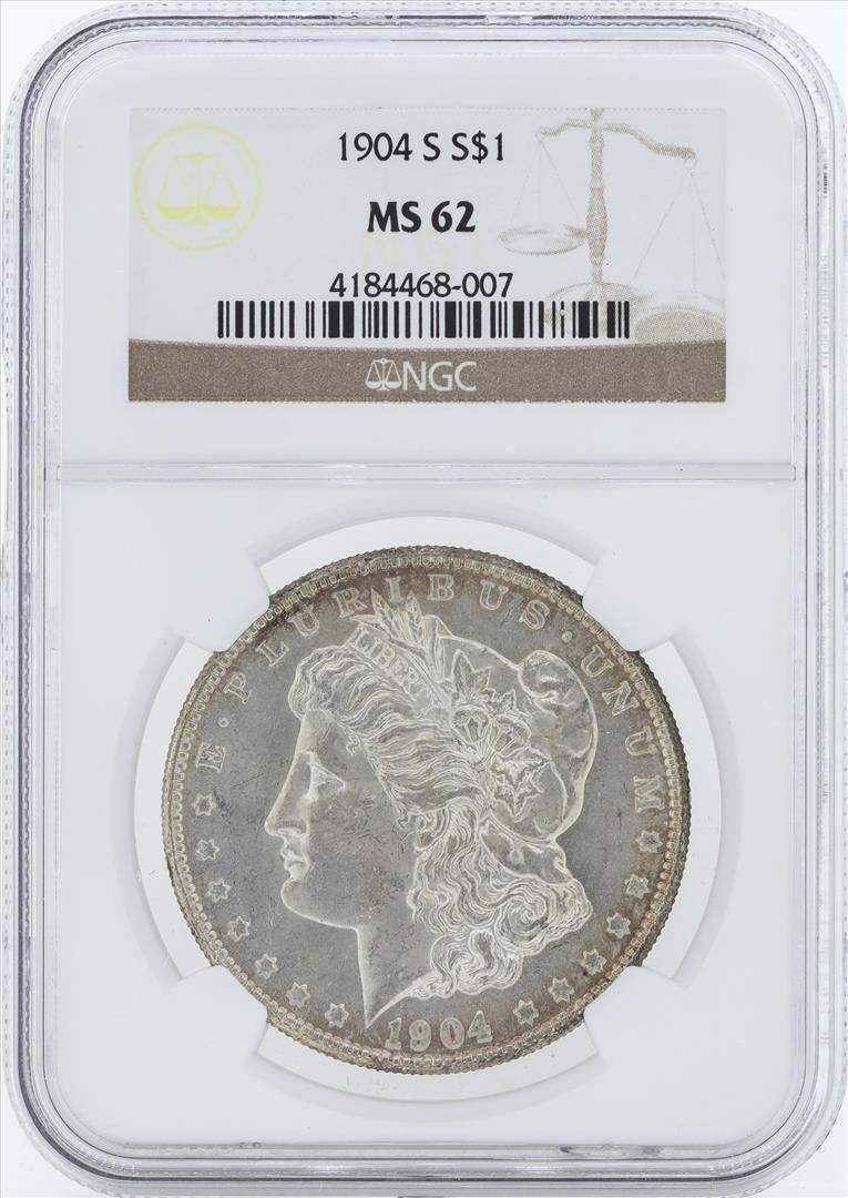 One 1904-S $1 Morgan Silver Dollar Coin NGC MS62. NGC Certified.