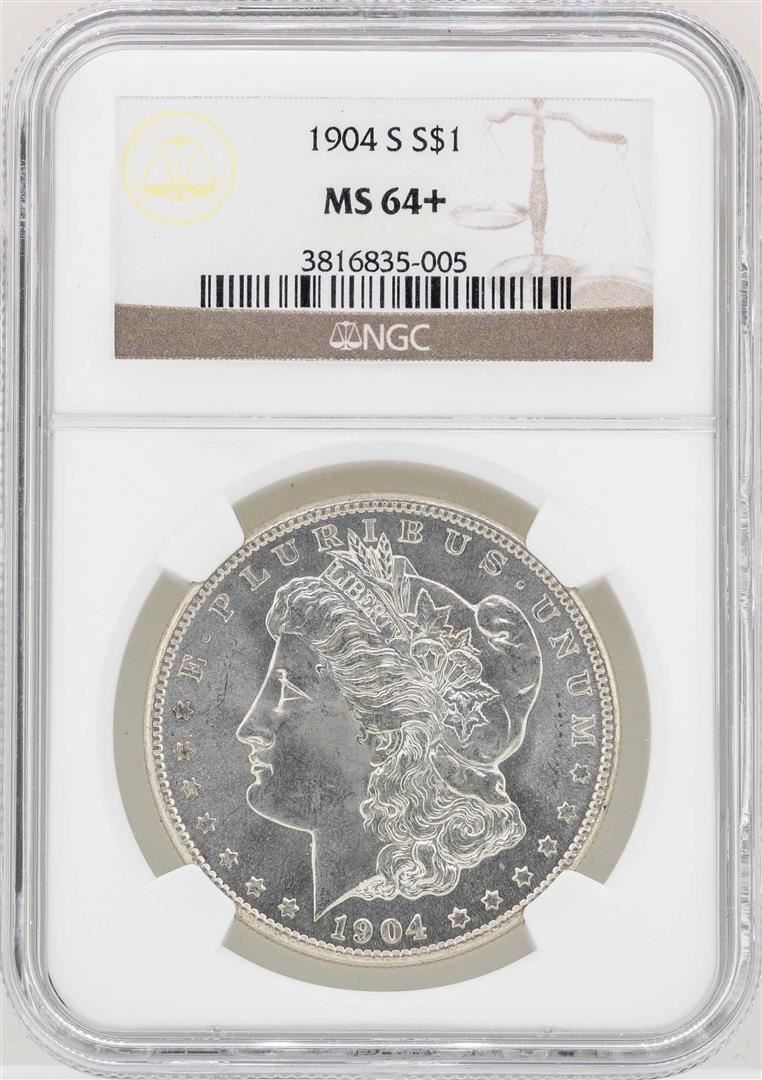 One 1904-S $1 Morgan Silver Dollar Coin NGC MS64+. NGC Certified.