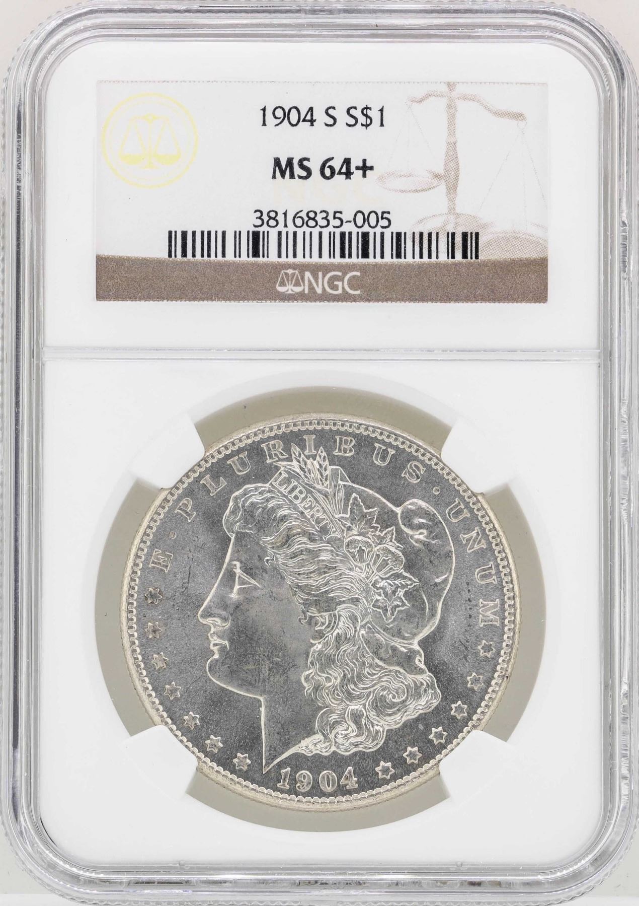 One 1904-S $1 Morgan Silver Dollar Coin NGC MS64+.