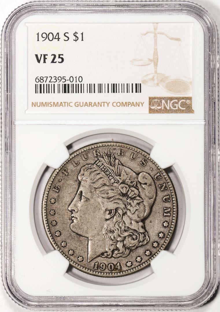 One 1904-S $1 Morgan Silver Dollar Coin NGC VF25. NGC Certified.