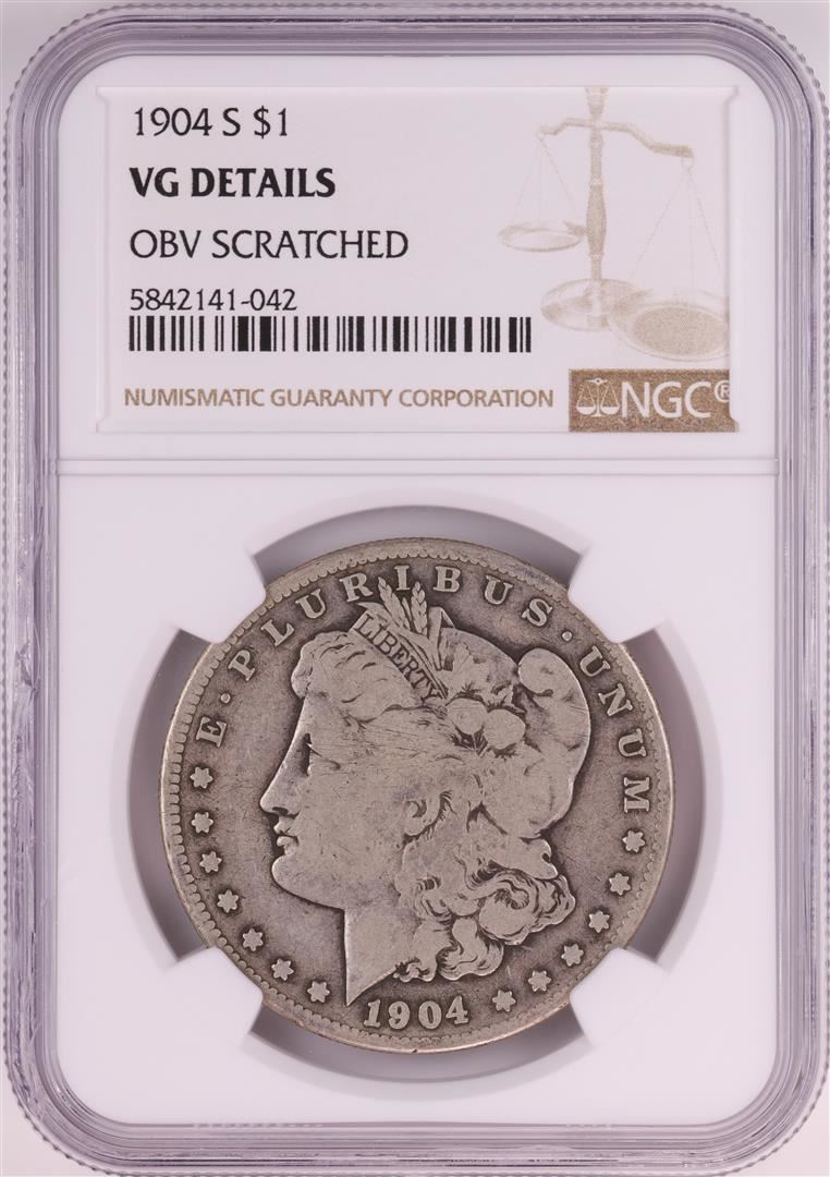 One 1904-S $1 Morgan Silver Dollar Coin NGC VG Details. NGC Certified.