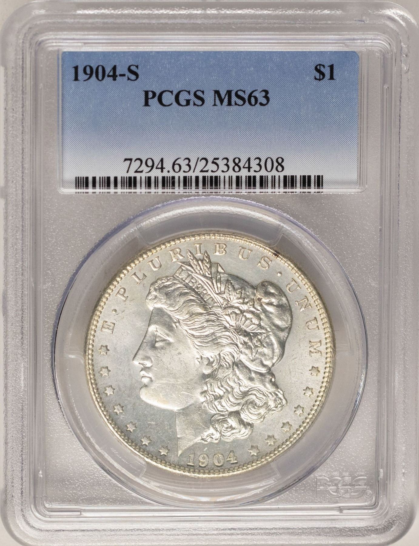 One 1904-S $1 Morgan Silver Dollar Coin PCGS MS63.