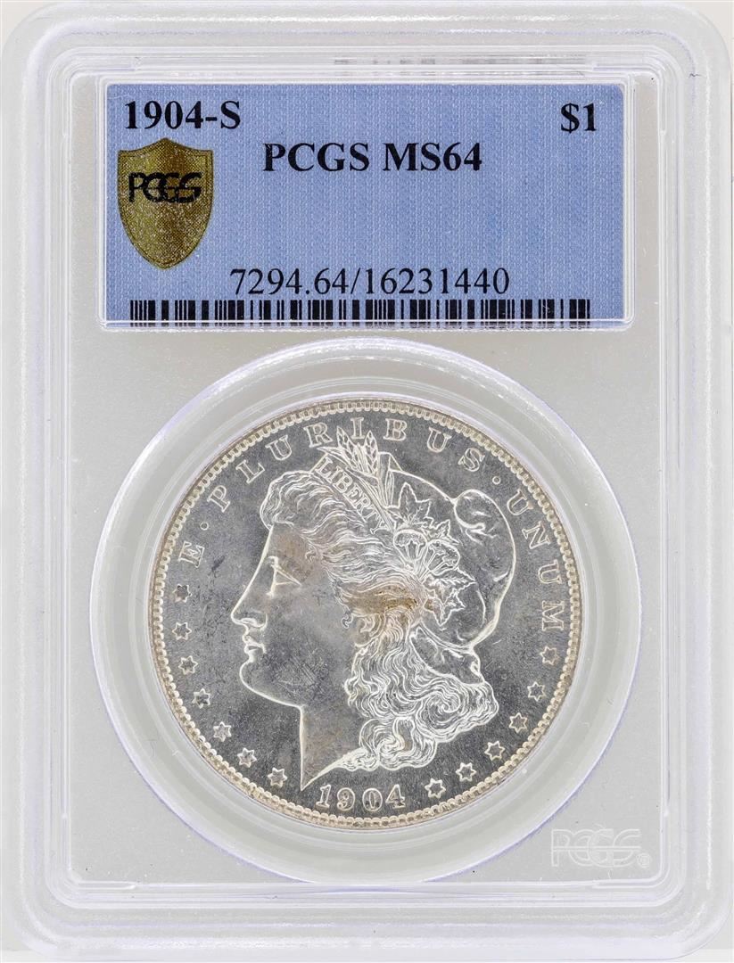 One 1904-S $1 Morgan Silver Dollar Coin PCGS MS64. PCGS Graded.