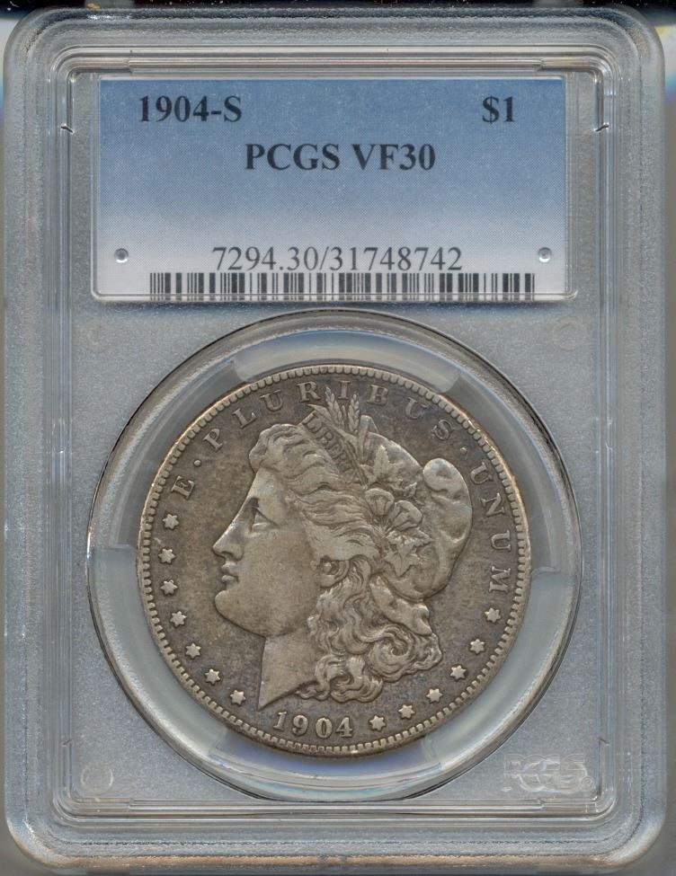 One 1904-S $1 Morgan Silver Dollar Coin PCGS VF30.
