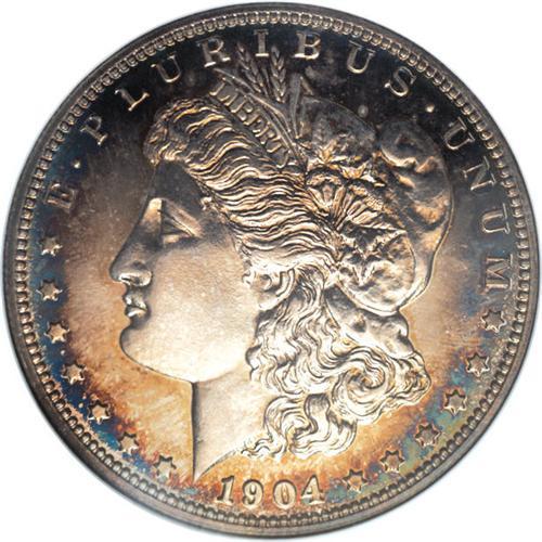 1904 S$1 PR65 NGC. Medium intensity cobalt-blue, laven