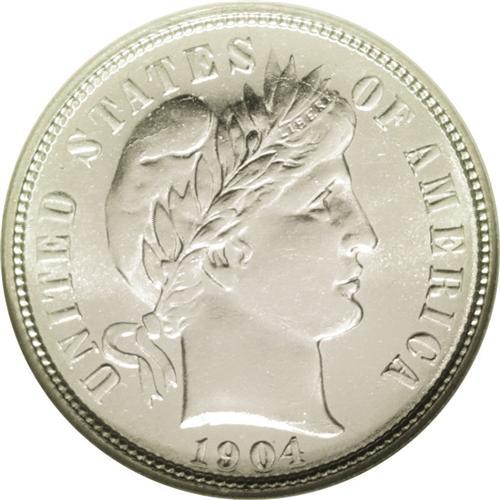 <B>1904-S<10C> MS65 NGC.</B></I> The '04-S is one of 14 issues in the Barber dime series with a mintage figure of less than one million pieces; in this case, only 800,000 coins were struck. In addition to being an absolute rarity, the '04-S is also a notable condition rarity in Gem condition. This is currently one of the finest examples certified by either of the major services. Bright mint luster covers both sides with a completely untoned appearance. A bit softly struck at the top of Liberty's head, otherwise well defined. A couple of tiny marks are visible on Liberty's lower jaw. Census: 5 in 65, 1 finer (6/06).