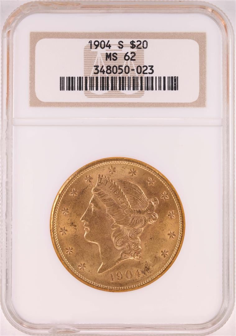 One 1904-S $20 Liberty Head Double Eagle Coin NGC MS62 - Chipped Slab. NGC Certified.