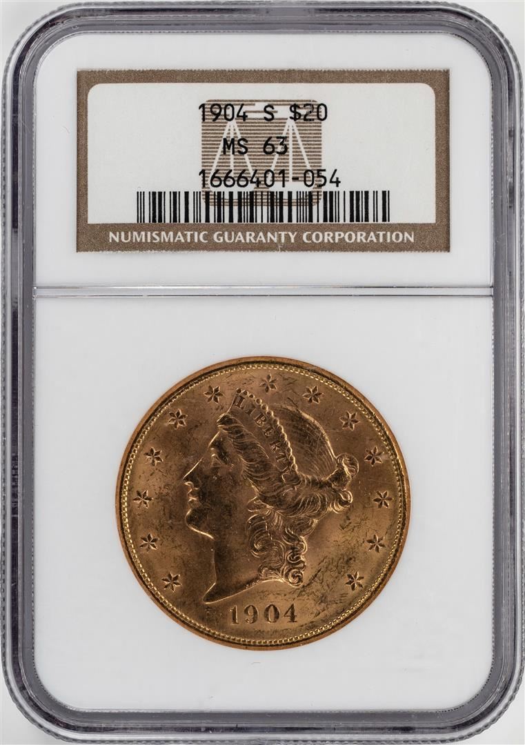 One 1904-S $20 Liberty Head Double Eagle Gold Coin NGC MS63. NGC Certified.