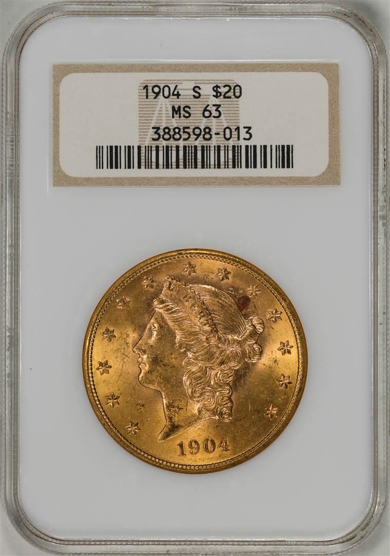 One 1904-S $20 Liberty Head Double Eagle Gold Coin NGC MS63. NGC Certified.