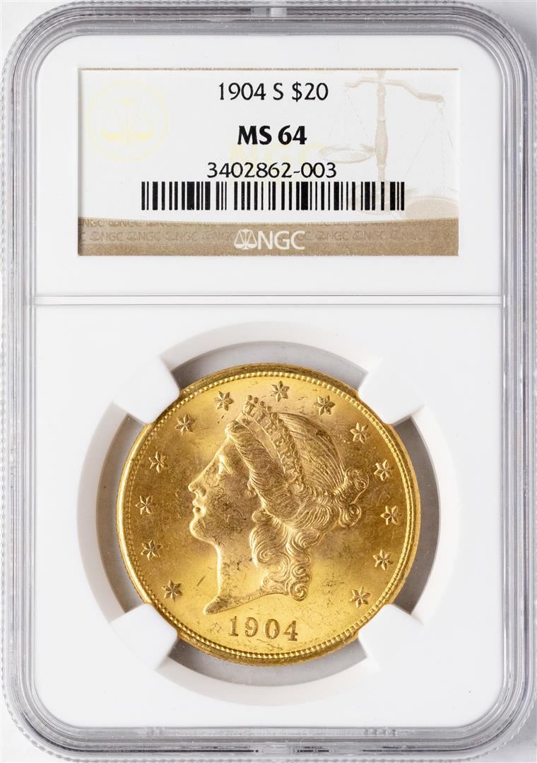 One 1904-S $20 Liberty Head Double Eagle Gold Coin NGC MS64. NGC Certified.