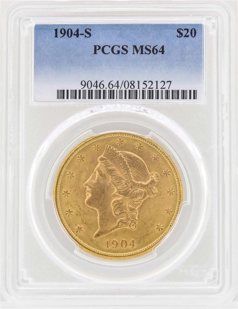 One 1904-S $20 Liberty Head Double Eagle Gold Coin PCGS MS64. PCGS Graded.