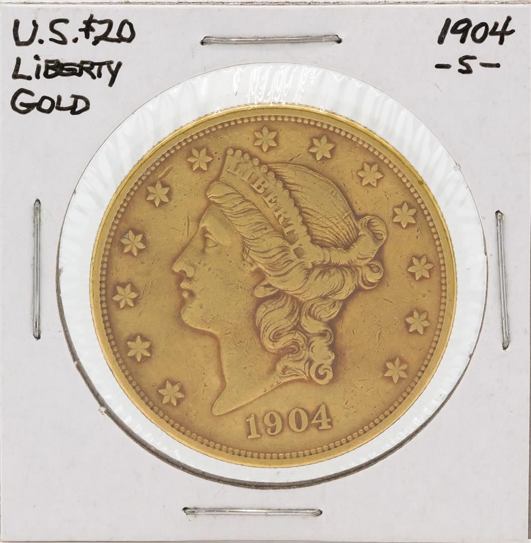 One 1904-S $20 Liberty Head Double Eagle Gold Coin.