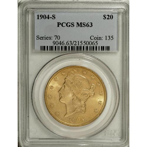 1904-S $20 MS63 PCGS. PCGS Population (4530/2334).