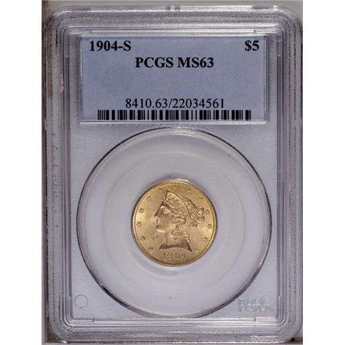 1904-S $5 MS63 PCGS. Even with a mintage of 97,000 pie