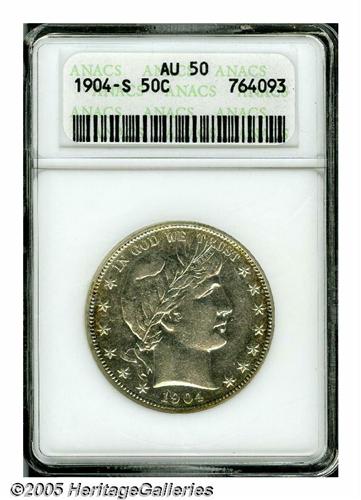 1904-S 50C AU50 ANACS. Lightly toned, well define