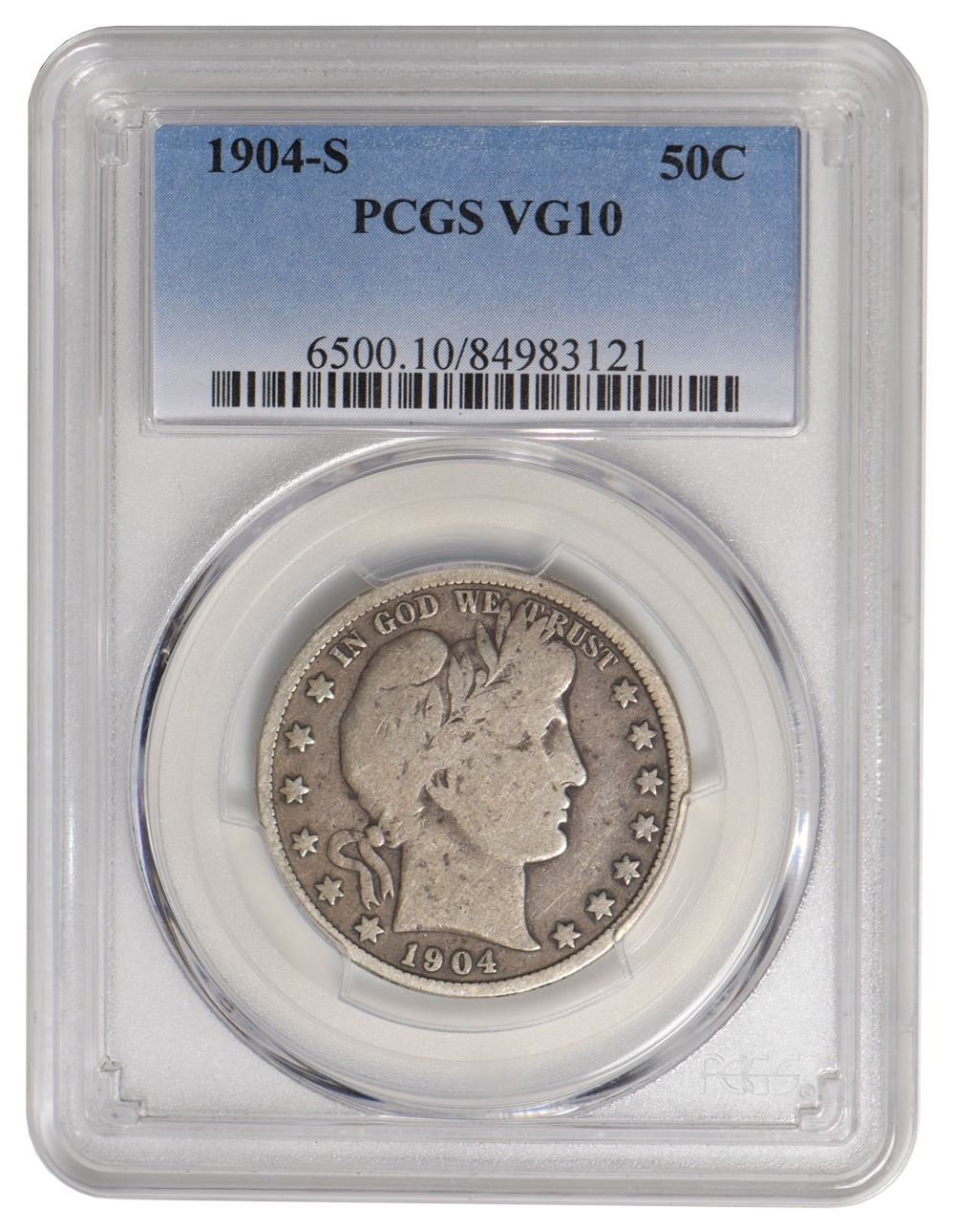 One 1904-S Barber Half Dollar PCGS VG10.