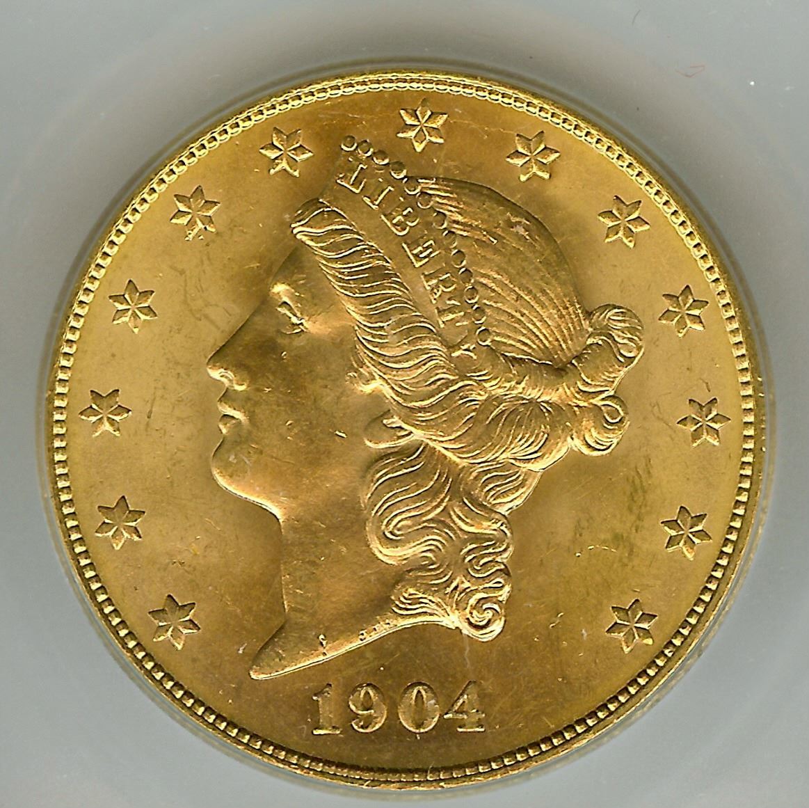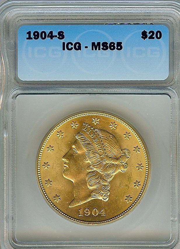 1904-S LIBERTY HEAD $20 GOLD DOUBLE EAGLE ICG MS65 SCARCE HIGH GRADE!