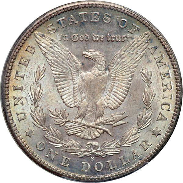 1904-S Morgan Dollar. PCGS graded MS-64 PQ CAC Approved. Lovely light golden toning on both sides. An impressive strike. It is understood that quantities of 1904-S Morgan dollars dribbled out of government holdings through the 1950s. The distributing institutions were as varied as the Treasury Department in Washington, D.C. and banks in the Los Angeles area. These coins served to make dealers and collectors think at the time that the '04-S was a common date in Mint condition. With the later Treasury Department holdings in the early 1960s and the Redfield estate in the 1970s (neither of which contained any Uncirculated '04-S Dollars), specialists began to understand that this date is more elusive than first believed. Today, 1904-S, the penultimate Morgan Dollar from the San Francisco Mint, is rightly regarded as one of the condition rarities in this actively collected series. Pop 385; 142 finer at PCGS (PCGS # 7294) .