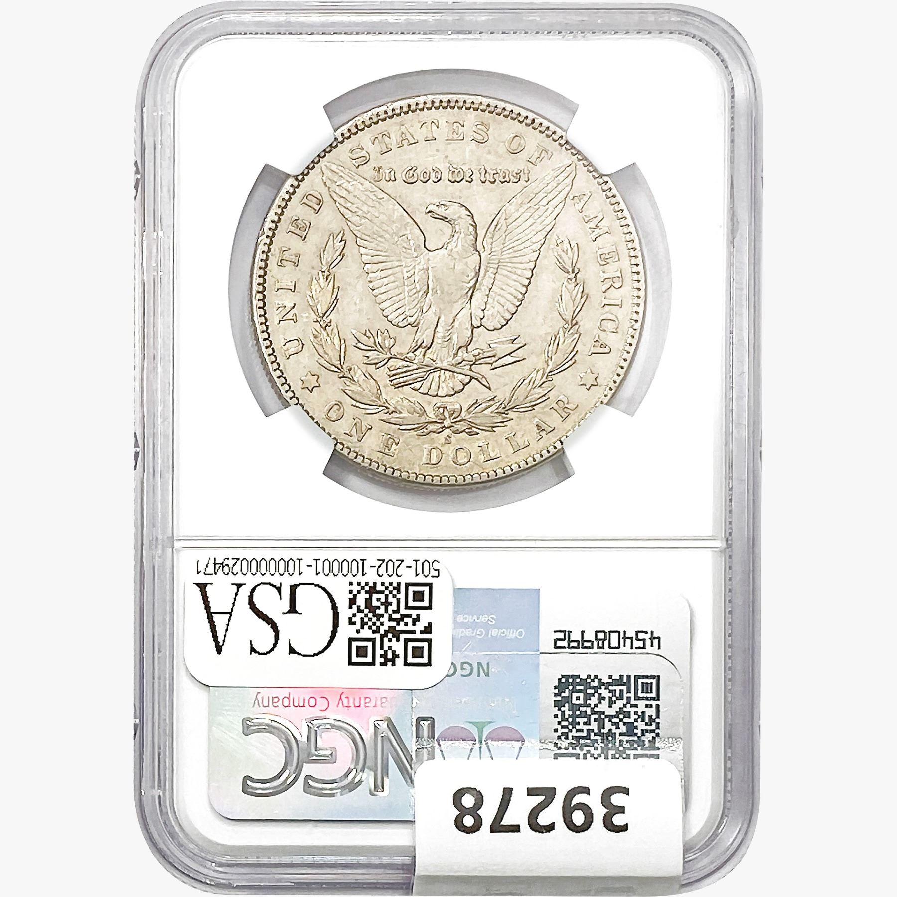 COINS AND CURRENCY LISTED IN GSA’S CATALOG AS GRADED AND ENCAPSULATED BY PCGS, NGC, ANACS, ICG, PCGS CURRENCY, PMG, PCGS BANKNOTE GRADING, CMC OR ANY OTHER THIRD-PARTY GRADING SERVICE ARE LIKEWISE SOLD “AS-IS” EXCEPT AS EXPRESSLY SET FORTH HEREIN. ALL THIRD-PARTY GRADING SERVICE GUARANTEES, INCLUDING AUTHENTICITY, ARE THE SOLE RESPONSIBILITY OF THE THIRD-PARTY GRADING SERVICE AND NOT WARRANTIES OR GUARANTEES OF GSA. BIDDERS SHOULD CONTACT THESE THIRD-PARTY GRADING SERVICES DIRECTLY WITH RESPECT TO ANY CLAIMS OR QUESTIONS THEY MAY HAVE CONCERNING THEIR GUARANTEES AND WARRANTIES. BIDDERS ACKNOWLEDGE AND AGREE THAT AUCTIONEER IS NOT BOUND BY OR LIABLE FOR ANY OPINION OR CERTIFICATION BY ANY THIRD-PARTY GRADING SERVICE. REMOVAL OF A PRODUCT FROM ITS PROTECTIVE CASING OR HOLDER OR ALTERATION OF ANY COIN HOLDER WAIVES ALL RIGHTS CONCERNING THE PRODUCT CONTAINED THEREIN.