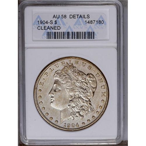 1904-S S$1 --Cleaned--ANACS. AU58 Details. A lightly ha 1904-S[img border='0' src='http://www.herita