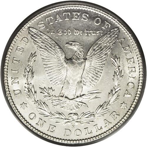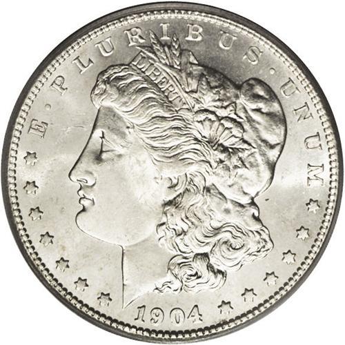 <B>1904-S<img border='0' src='http://www.heritagecoins.com/images/star.gif' width=10 height=10>$1> MS64 PCGS.</B></I> Effulgent cartwheel luster graces the surfaces of this high-end and in-demand better-date Morgan dollar. The brilliant, untoned, silver-white surfaces are superbly appealing, despite a few stray marks that seem to prevent a Gem rating.<BR><I>From The Jackson Hole Collection.</B></I>