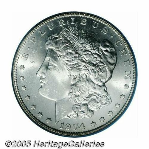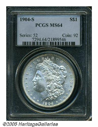 <B>1904-S<S$1> MS64 PCGS.</B></I> Untoned with excellent sharpness in the centers for this late-date condition rarity. There are a few relatively minor abrasions on Liberty's nose and cheek, otherwise the bright, satiny surfaces are especially clean. Well defined but not quite full.