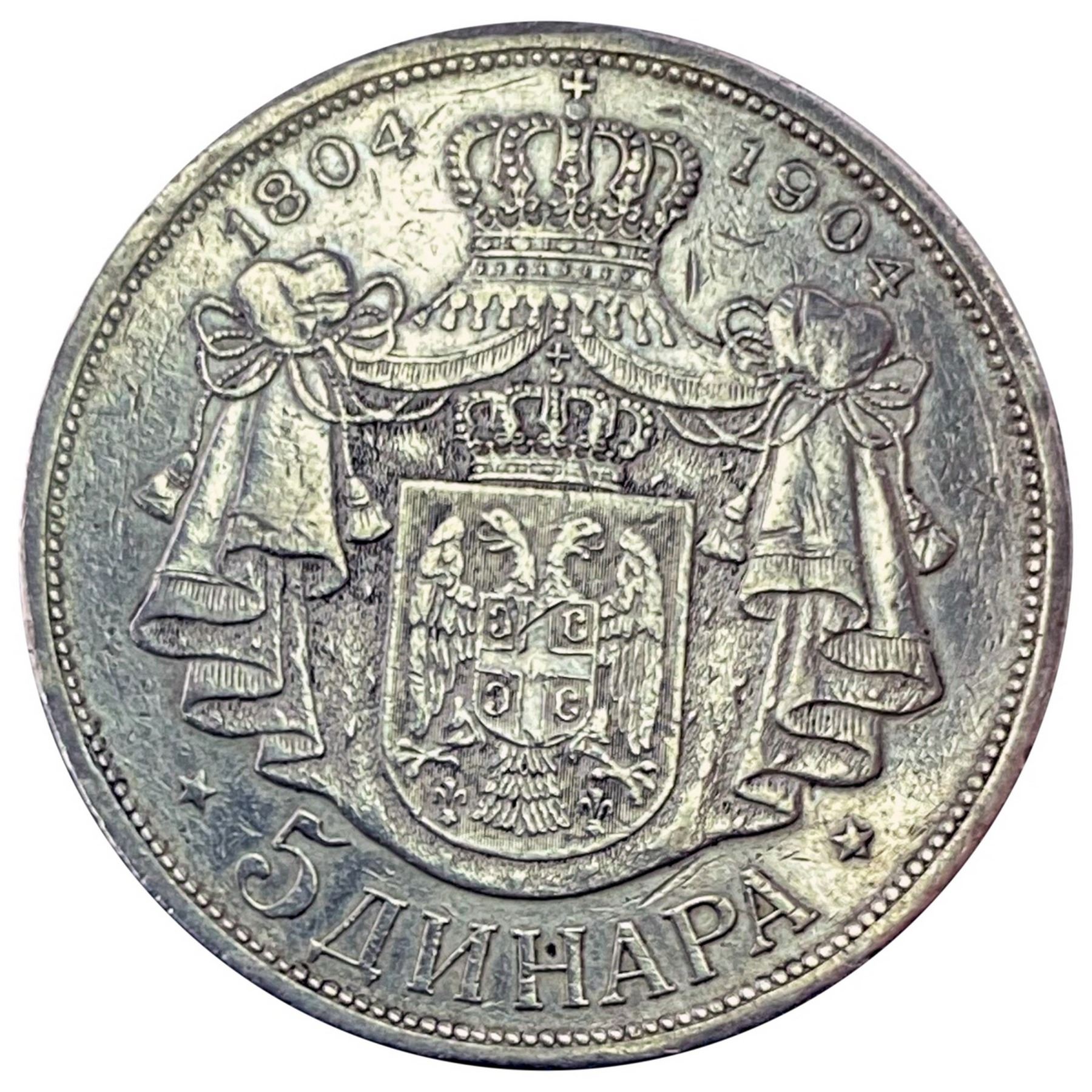 1904 Serbia Silver 5 Dinara CLOSELY UNCIRCULATED