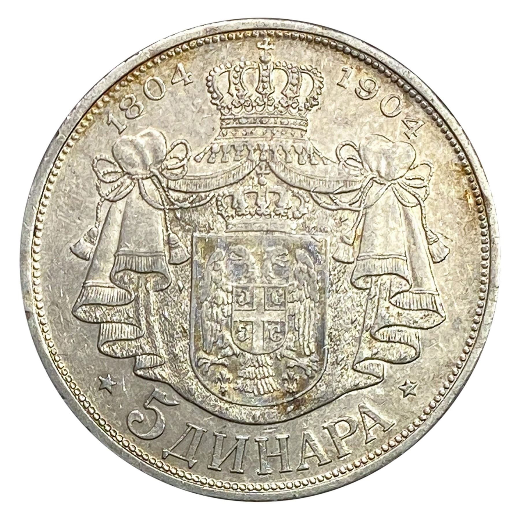 1904 Serbia Silver 5 Pinara CLOSELY UNCIRCULATED