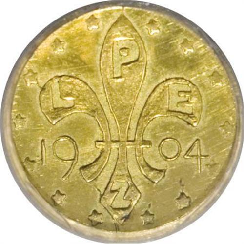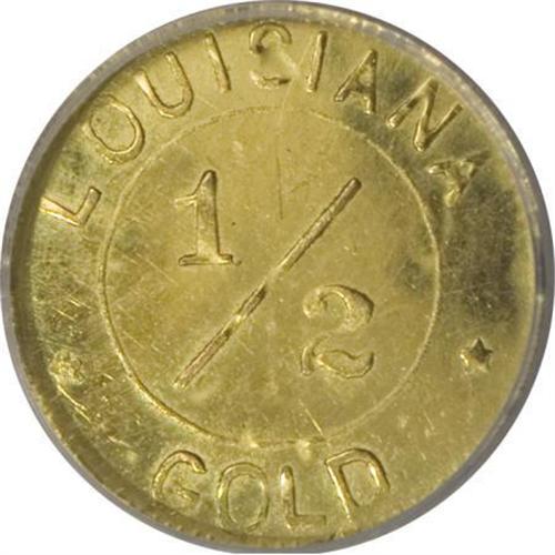 <B>1904 St. Louis World's Fair 1/2 Gold MS64 Prooflike NGC.</B></I> Hendershott 61-330. A flashy example, held back in grade only by a hair-thin vertical mark on the reverse near 12 o'clock. The S in LOUISIANA is soft, as made due to metal flow into the top of the fleur de lis. The Z at the base of the fleur de list represents the maker, future <I>Numismatist</B></I> publisher Farran Zerbe.<BR><BR><b>Shipping:</b> Coins & Currency (<a target="_blank" href="http://www.heritageauctions.com/common/shipping.php">view shipping information</a>)