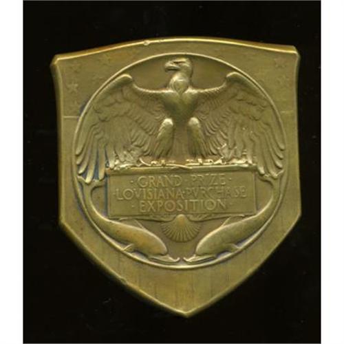 <B>1904 St. Louis World's Fair Grand Prize Medal.</B></I> Hendershott 30-90. Bronze, 74.3 mm x 60.2 mm, 149.7 gm. Grand Prize / Louisiana Purchase / Exposition. Attractive aside from a scratch near 12 o'clock on the eagle side.<BR><BR><b>Shipping:</b> Coins & Currency (<a target="_blank" href="http://www.heritageauctions.com/common/shipping.php">view shipping information</a>)