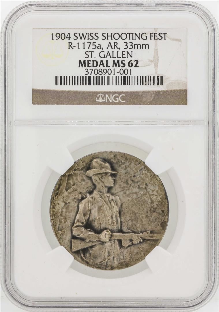 One 1904 Swiss Shooting Fest St. Gallen 33mm Medal NGC MS62. NGC Certified.
