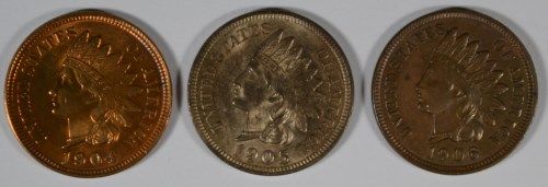 1904 UNC, 1905 UNC & 1906 UNC INDIAN HEAD CENTS